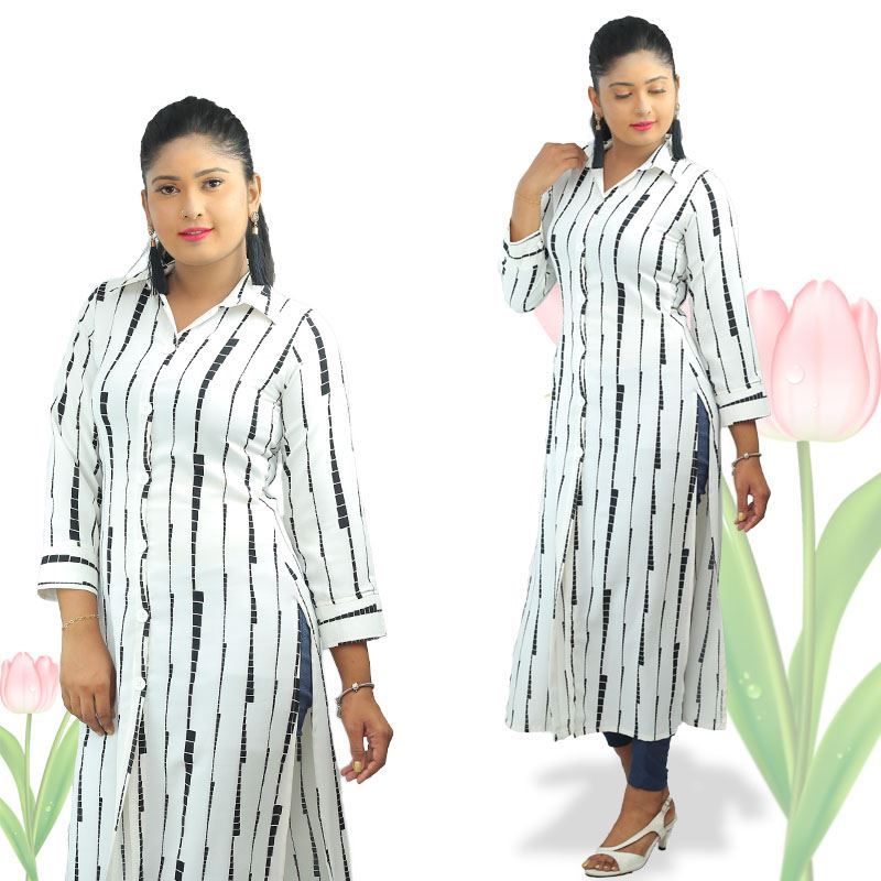 Black and white long sleeves long top with collar