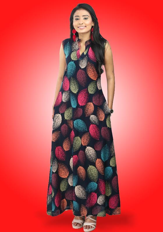 Neck Designed Georgette Maxi Dress with Small Flowers