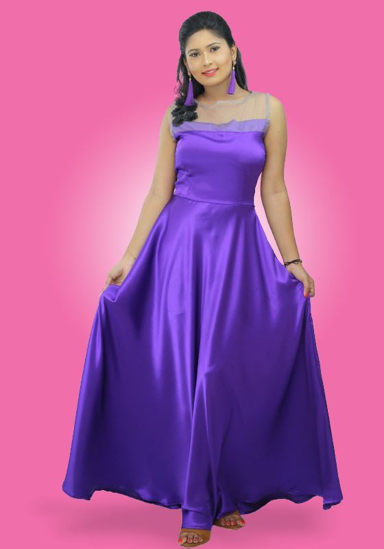 Black Net Mixed Crepe Silk Sleeveless Maxi Party Dress