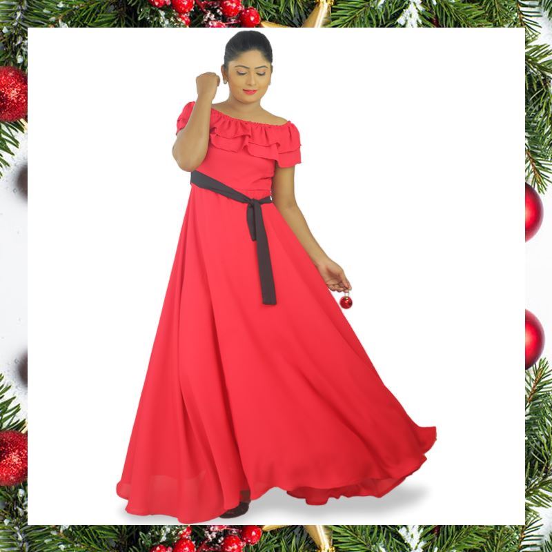 Double frilled Georgette maxi dress