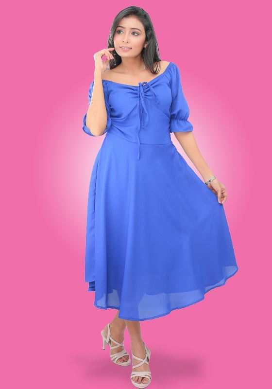 Front Knotted Short Flared Party Dress with Puff Sleeves