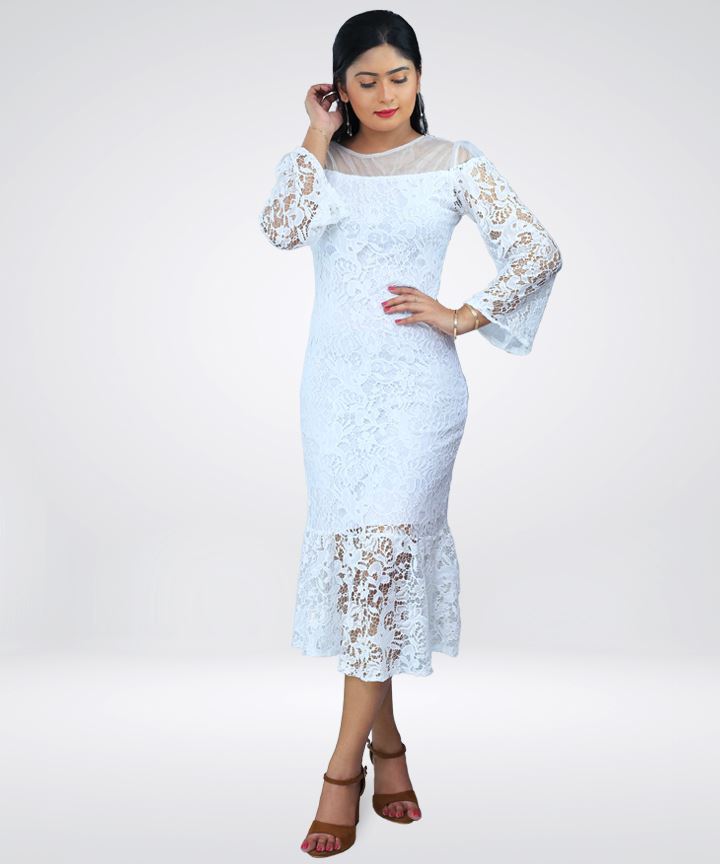 Full Laced Long Sleeve Midi Dress