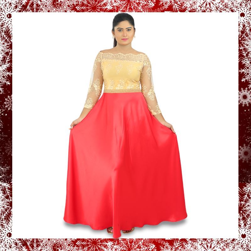 Red & Gold mixed Long Maxi dress