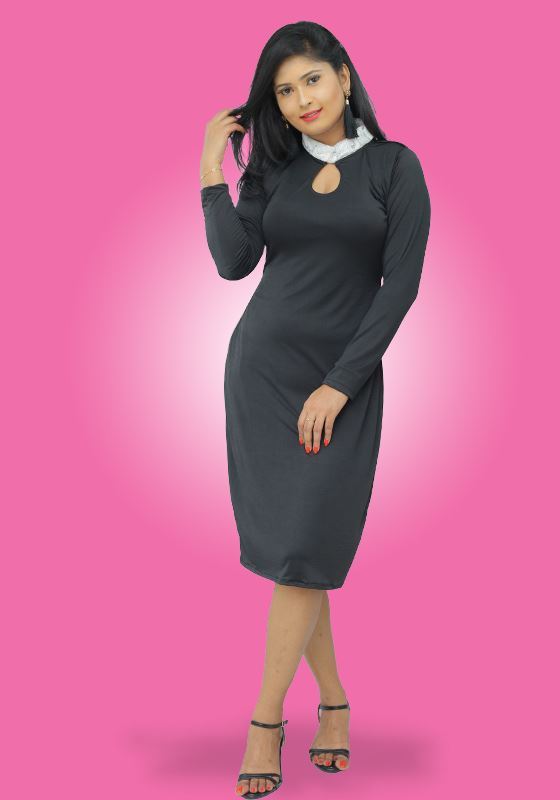 Printed Designed Chinese Collared Maxi Dress with Pockets