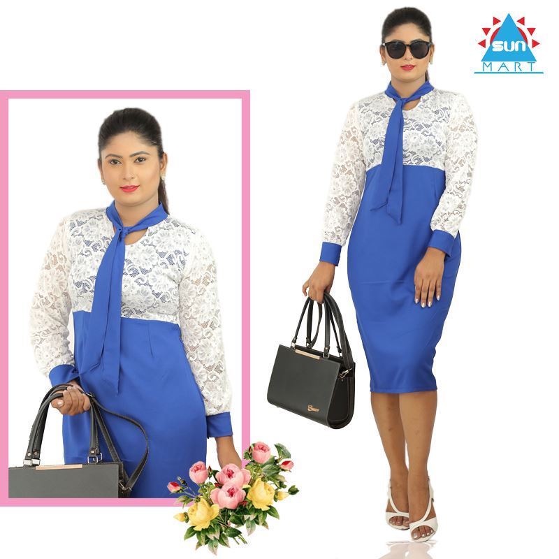 Lace Panel Tie-neck back Slit Sheath Tight Dress
