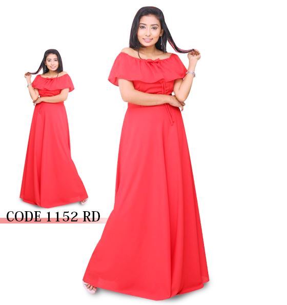 Off shoulder frilled Georgette maxi dress