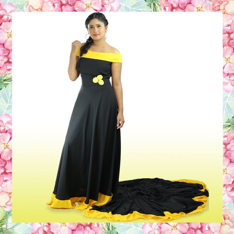 Long Sleeves Round Necked Flared Maxi Party Dress with Embroidery Flowers