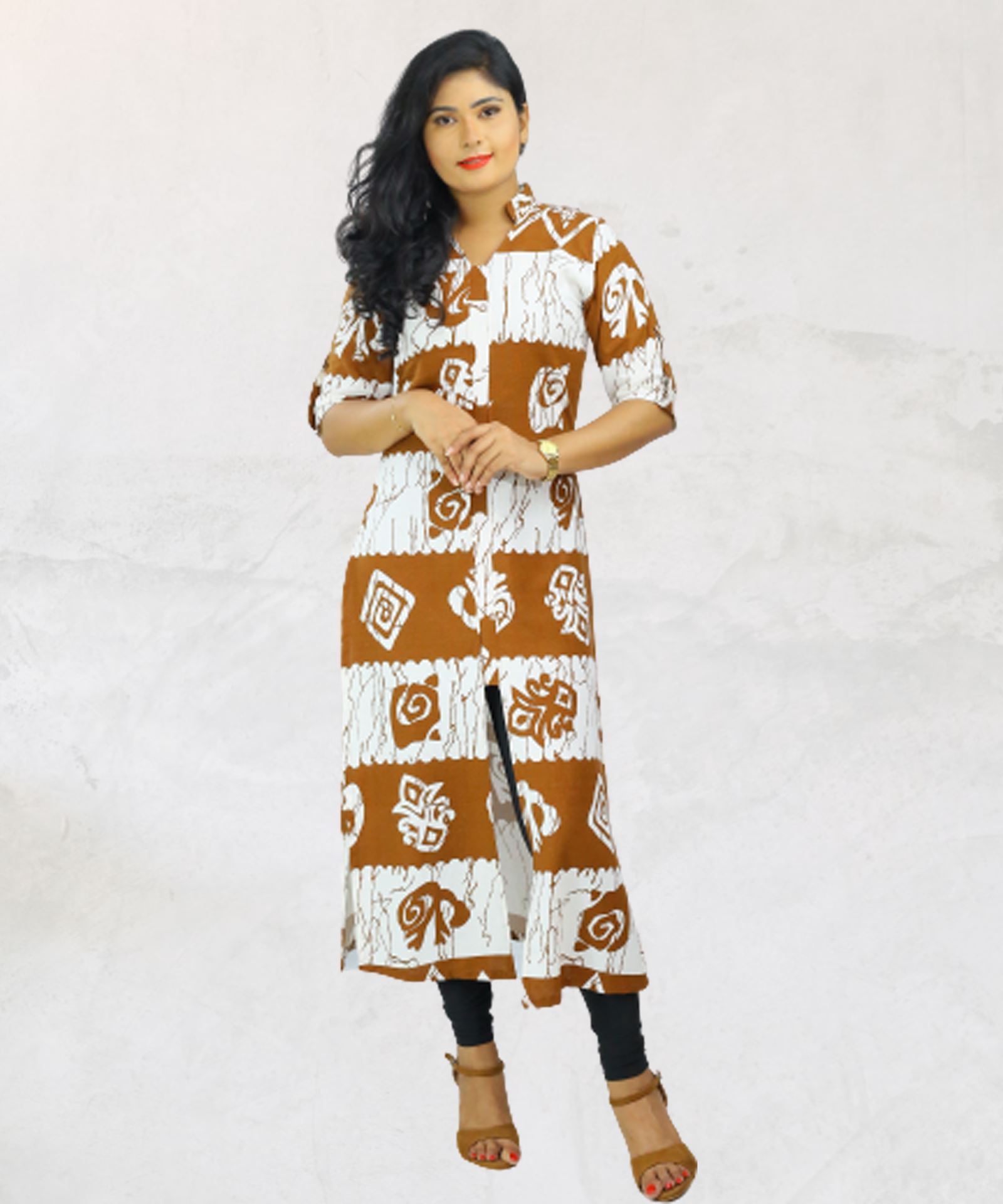 Printed Designed Chinese Collared Maxi Dress with Pockets