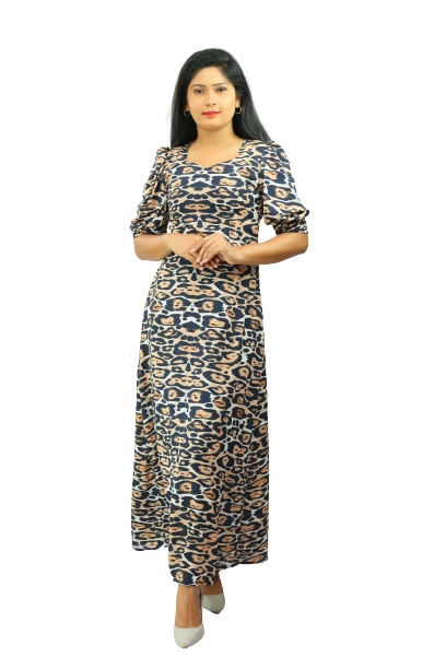 Round Necked Three Quarter Sleeves Long Maxi Dress