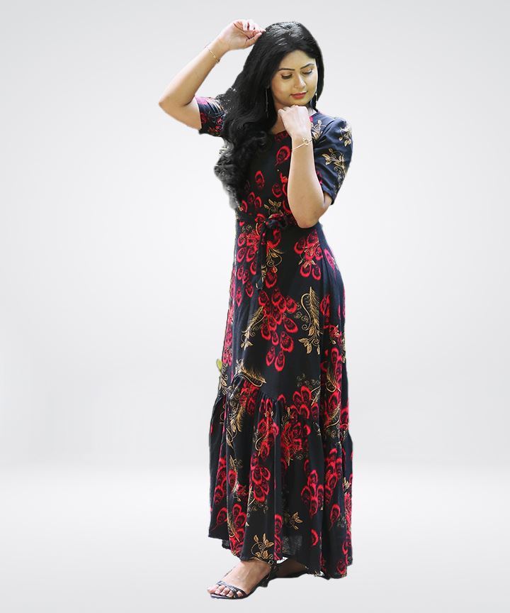 Neck Designed Georgette Maxi Dress with Small Flowers