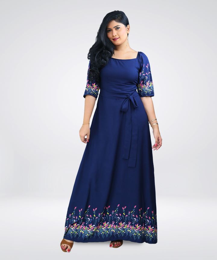Side Knot Floral Maxi Dress With Three Quarter Sleeves