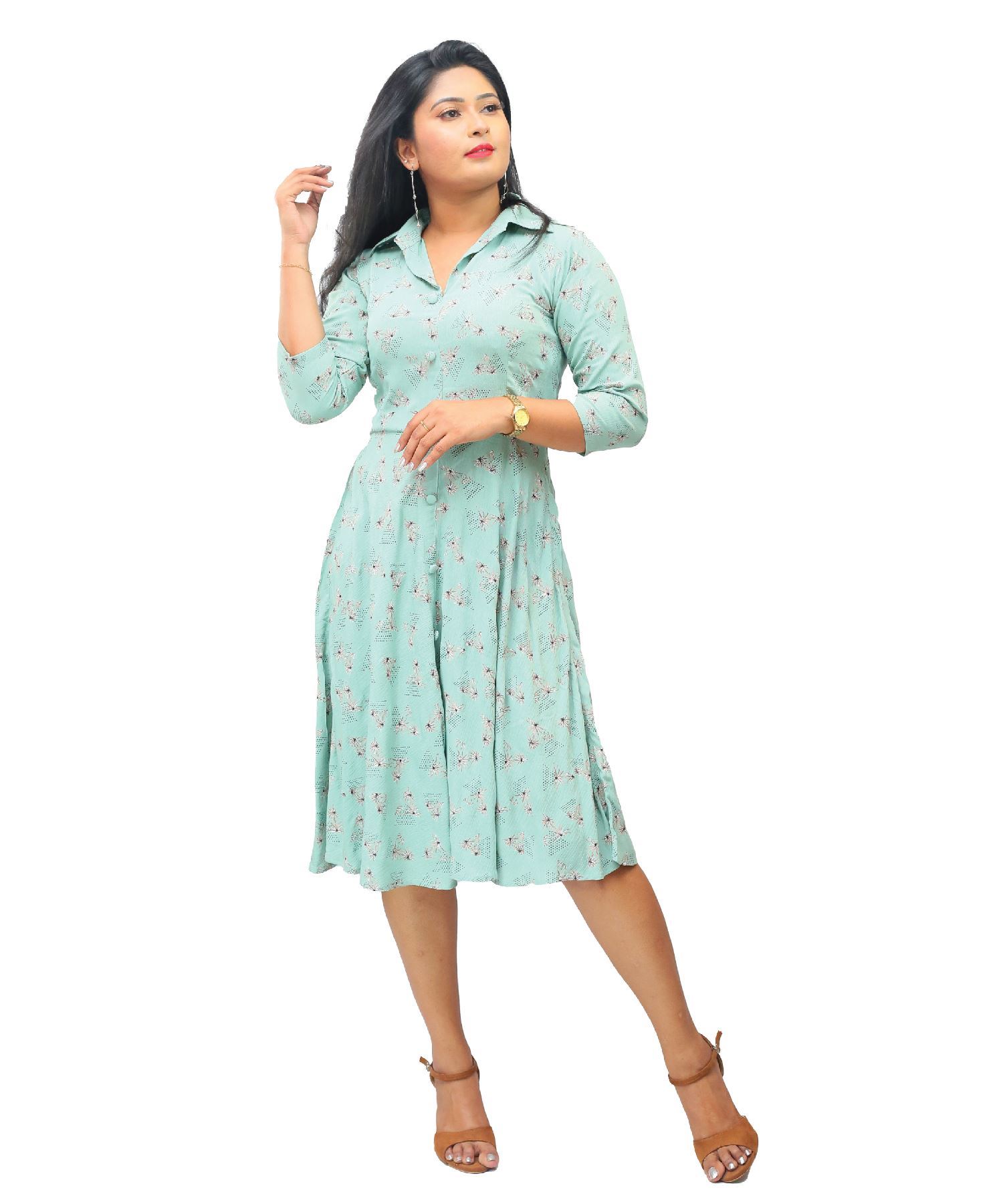 Three-quarter Sleeves Side Knot Wrap Around Dress